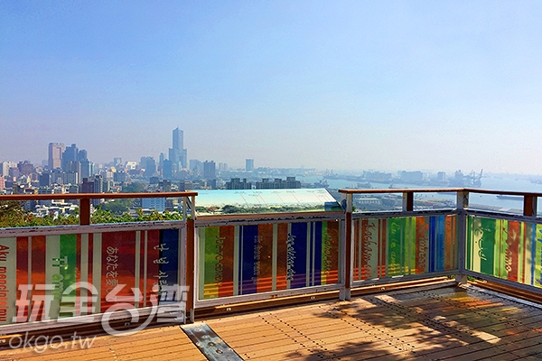 在觀景台上向外眺望,可以將高雄城市風景與海景盡收眼底,白天可看見白雲藍天加上大海的慵懶景緻,偶爾更能看見港邊的船隻入港情景,當到了夜晚,輕輕抬頭可見繁星點點,低頭可望霓虹閃爍,靜下心來四周更是甜蜜的綿綿耳語,讓人心中充滿著幸福的泡泡呢!