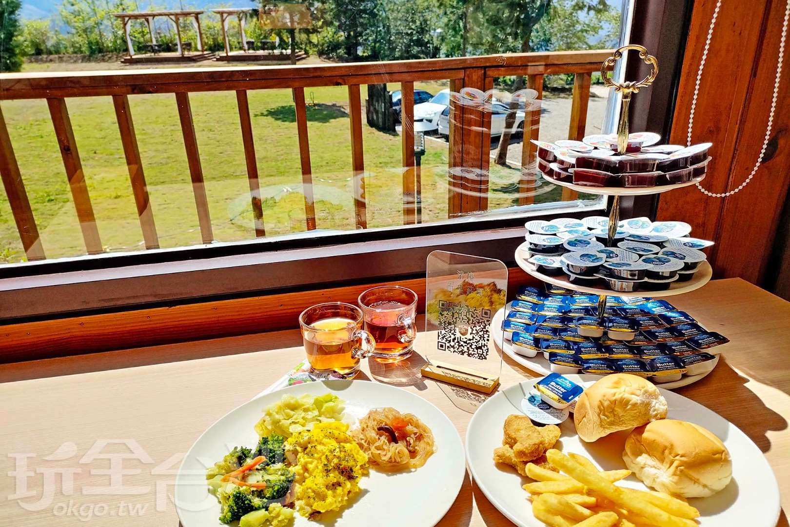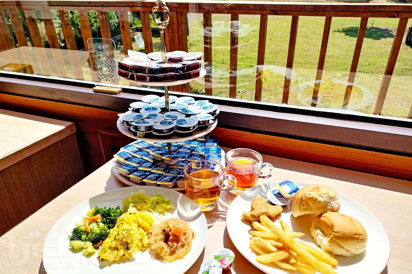 內容:手工小餅乾、水果果凍、日月潭紅玉紅茶、日本焙茶、熱咖啡(餐點內容如有變動,以當日供應為主)。