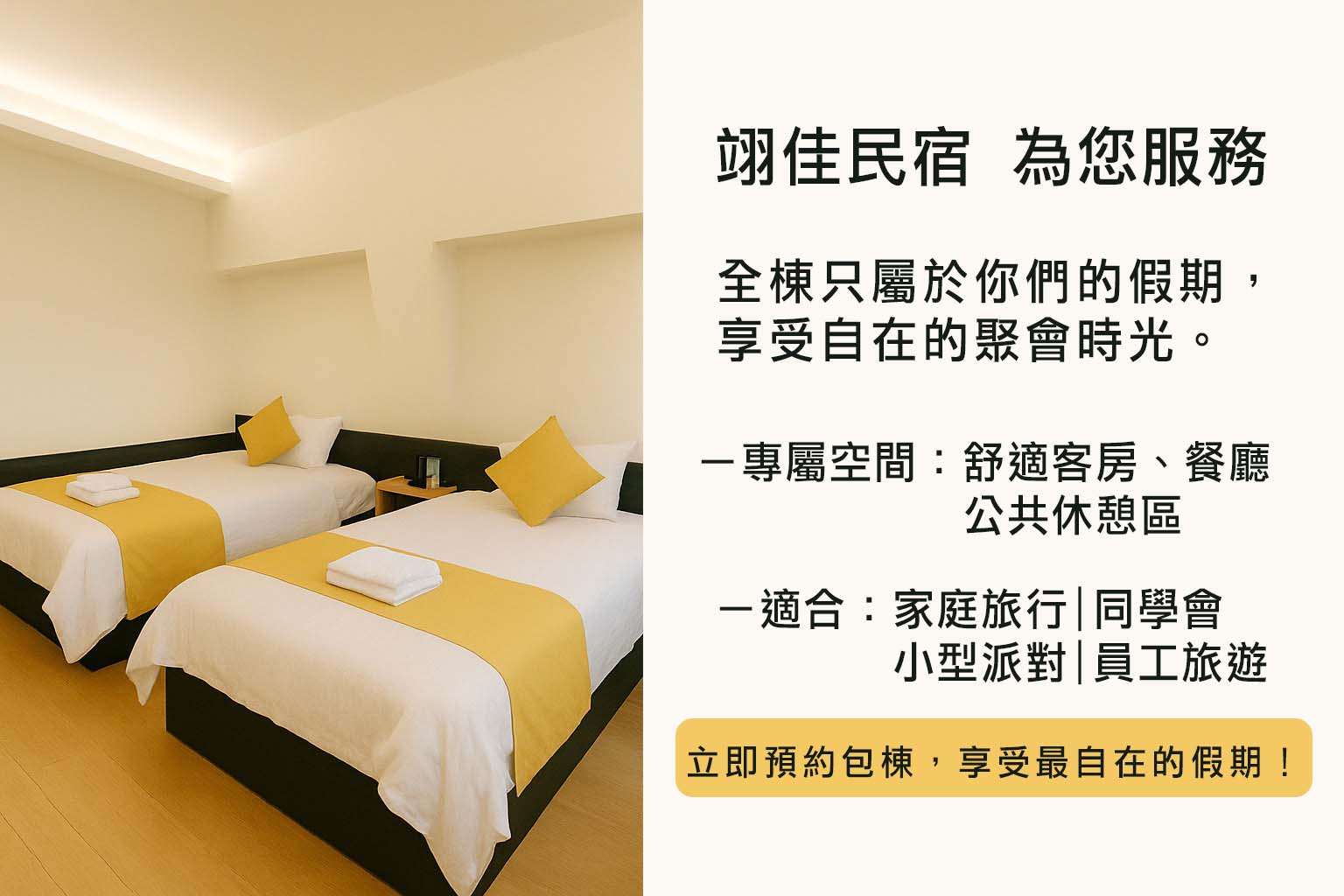 - 若您須要訂房或想進一步洽詢任何問題,請與「澎湖翊佳民宿」聯繫,電話【0979-197000】。